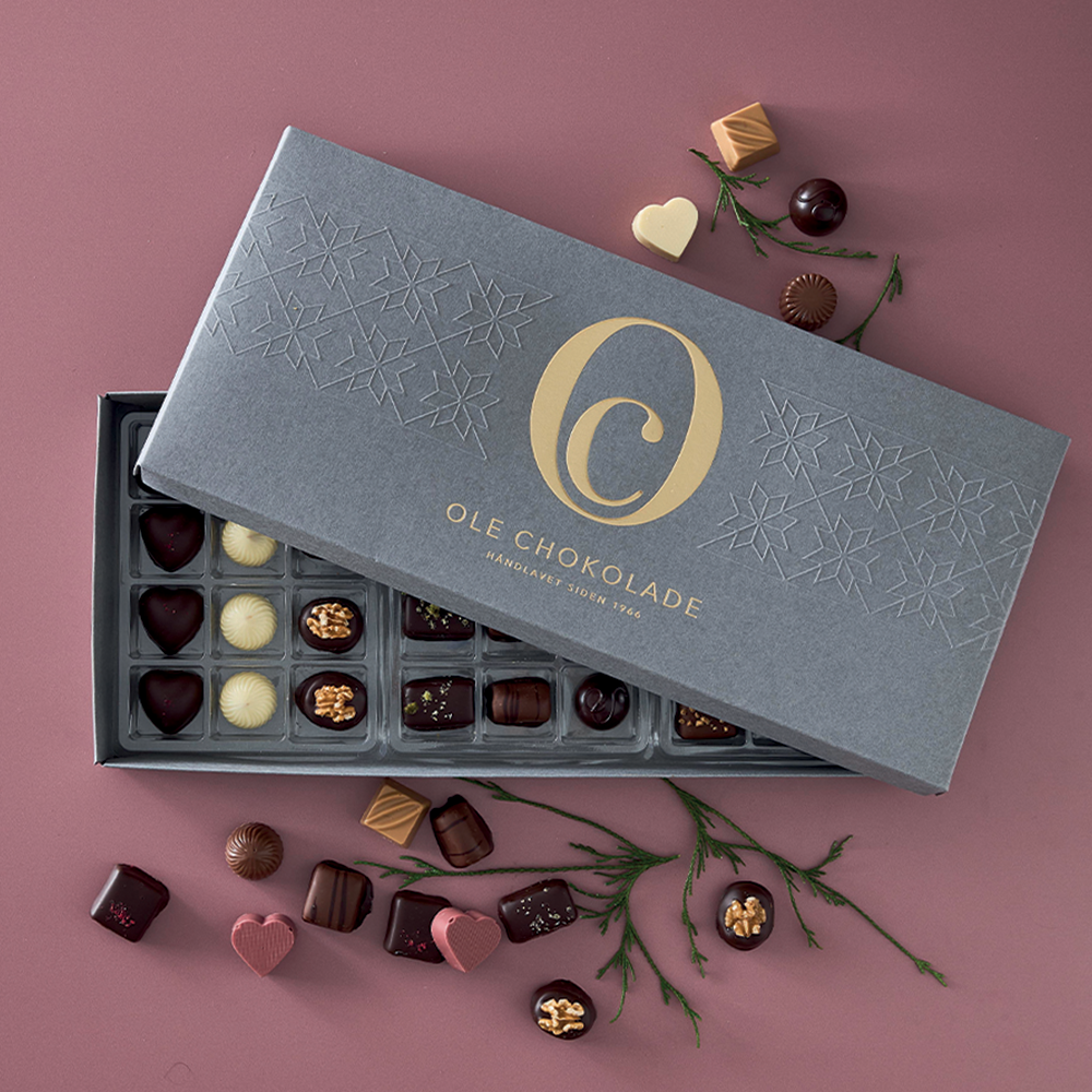 En smuk og elegant juleæske med smagsfulde dessertstykker fyldt med julens hemmeligheder. Perfekt som en julehilsen til en, du holder af, eller lidt ekstra forkælelse til dine medarbejdere.