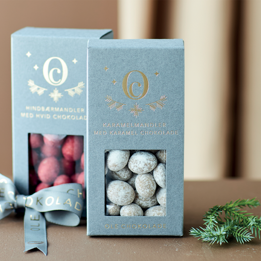 Skal der være lidt ekstra sødt på mødebordet? Så forkæl gæsterne med vores gourmet mandler bestående af spanske mandler, der er overtrukket med et tykt lag chokolade og efterfølgende vendt i decorsokker.