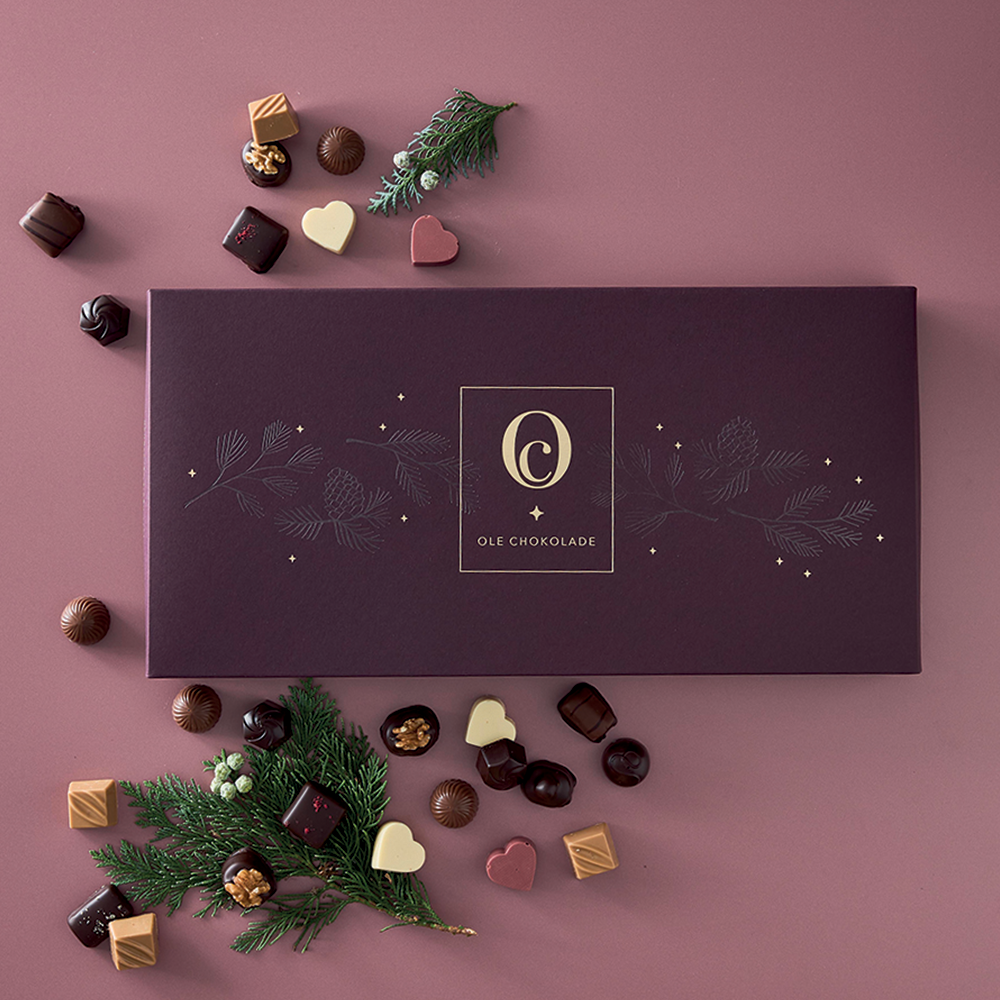 En smuk og elegant juleæske med smagsfulde dessertstykker fyldt med julens hemmeligheder. Perfekt som en julehilsen til en, du holder af, eller lidt ekstra forkælelse til dine medarbejdere.
